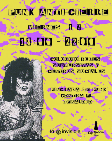 Empezamos con una Café donde hablaremos de redes subversivas y centros sociales y su importancia en los feminismos y después vamos a darle al punk: ⚡