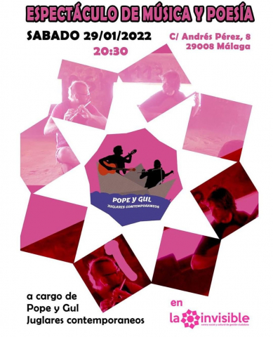 Espectáculo de música y poesía original en el que Pope y Gul, un dúo mesical de juglares contemporáneos, llegan a ralentizar el tiempo, y con sus corazones tan inocentes como viejos invitan a sentir y reflexionar en torno a temas variados como el amor humano, la filosofía, la mística, el interior del ser, la política y la sociedad. A preciosas y terribles palabras rescatadas del interior del ser, acompaña la música vibrante de la guitarra y el canto de Pope, así como la flauta traversa, el serrucho musical y los coros de Gul .
