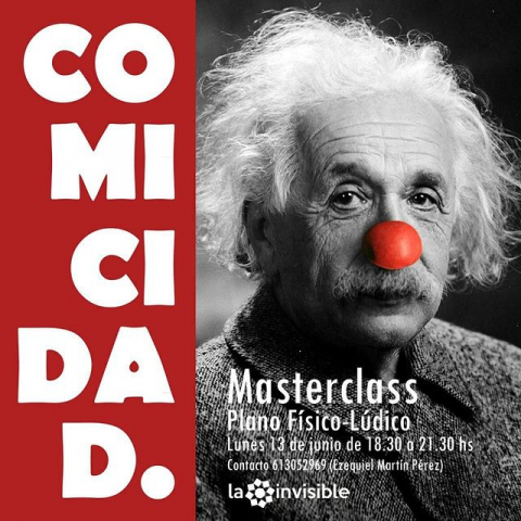 Te invitamos a la Masterclass de Comicidad, un espacio de exploración lúdica que nos permite descubrir a través de distintas disciplinas teatrales nuestras propias reglas cómicas. Propiciando dentro del juego una hermosa herramienta de autoconocimiento y superación de nuestros límites expresivos. Un lugar de juego, disfrute y encuentro. En ésta oportunidad profundizaremos particularmente en dos planos del estudio de la Comicidad, lo Físico y lo Lúdico. La clase es a cooperación solidaria sugiriendo un valor de 10 euros. Creemos en la cultura como derecho, es por ello que no queremos que nadie se quede afuera por el factor económico.