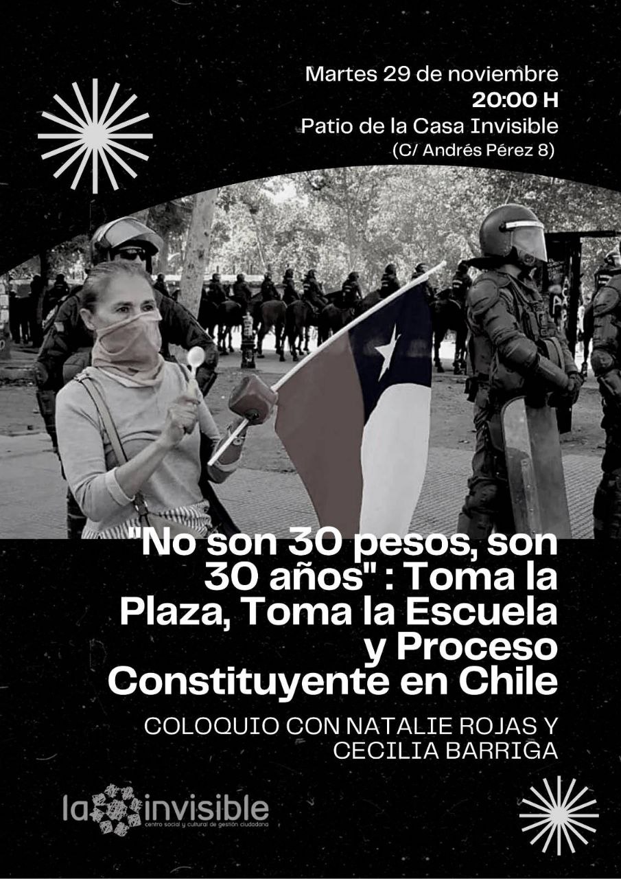 Coloquio con Natalie Rojas y Cecilia Barriga "`No son 30 pesos, son 30 años': Toma la Plaza, Toma la Escuela y Proceso Constituyente en Chile".