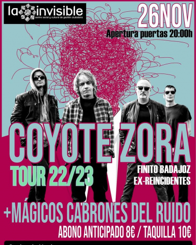 El 26 de noviembre estaremos con una de nuestras bandas favoritas @coyotezora Liderados por Finito de Badajoz ex guitarrista de @reincidentesrock estaremos en la @lacasainvisible junto a esta bandaza. Gran cartel que se ha marcado el "godfather of the punk" de la nación andaluza .