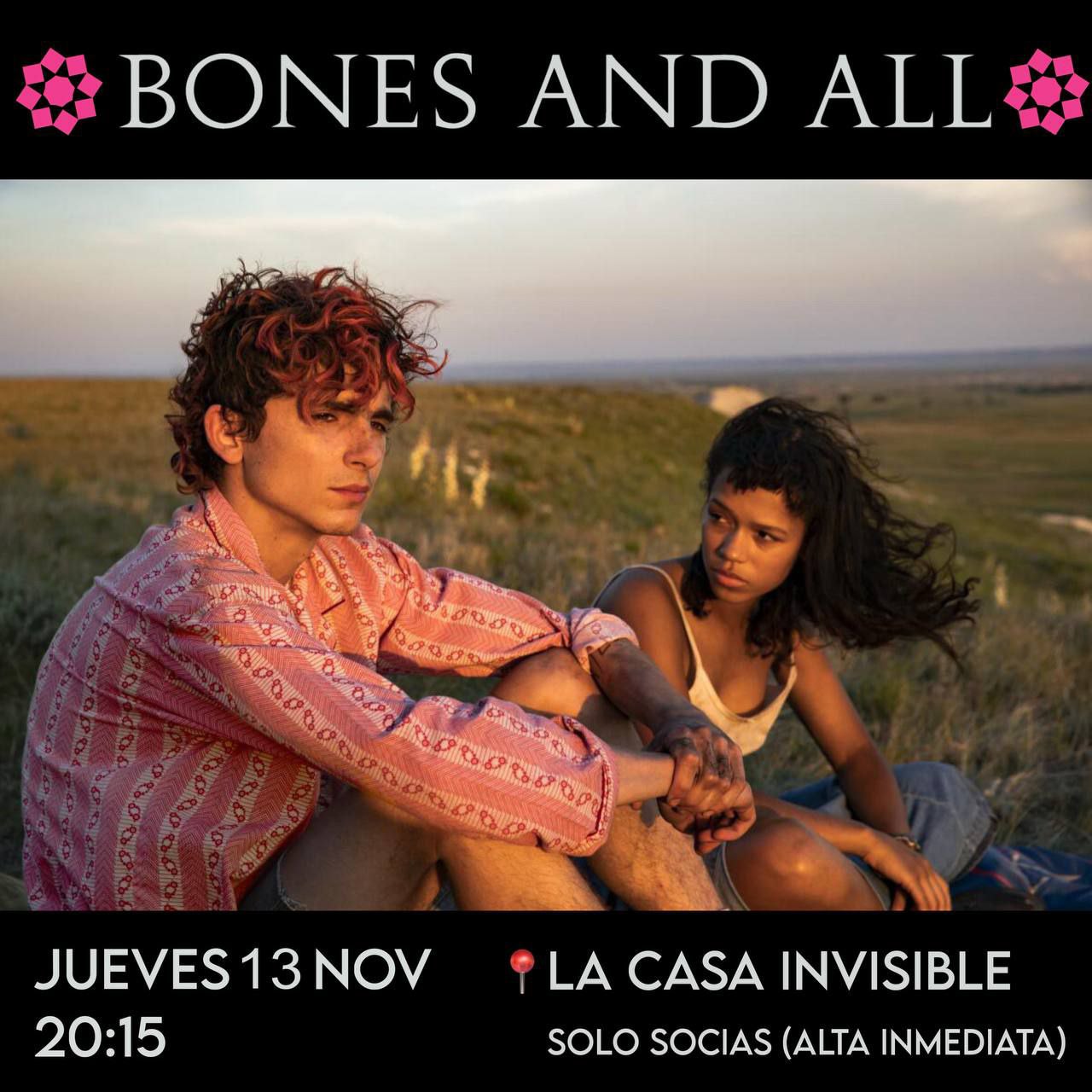 En esta ocasión proyectamos la poética y perturbadora Bones and All, una historia de amor entre los márgenes del deseo y la monstruosidad. Luca Guadagnino construye un viaje por la América profunda a través de dos jóvenes caníbales que buscan pertenecer en un mundo que los rechaza.