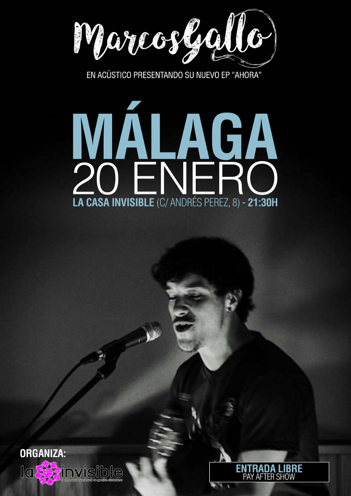 El sábado 20 a las 21:30 nos visita Marcos Gallo para presentar su nuevo EP 'Ahora'. Cantautor burgalés afincado en Barcelona, narra historias a través de sus canciones. Canciones que nos invitan a reflexionar sobre lo político y lo social de la vida.