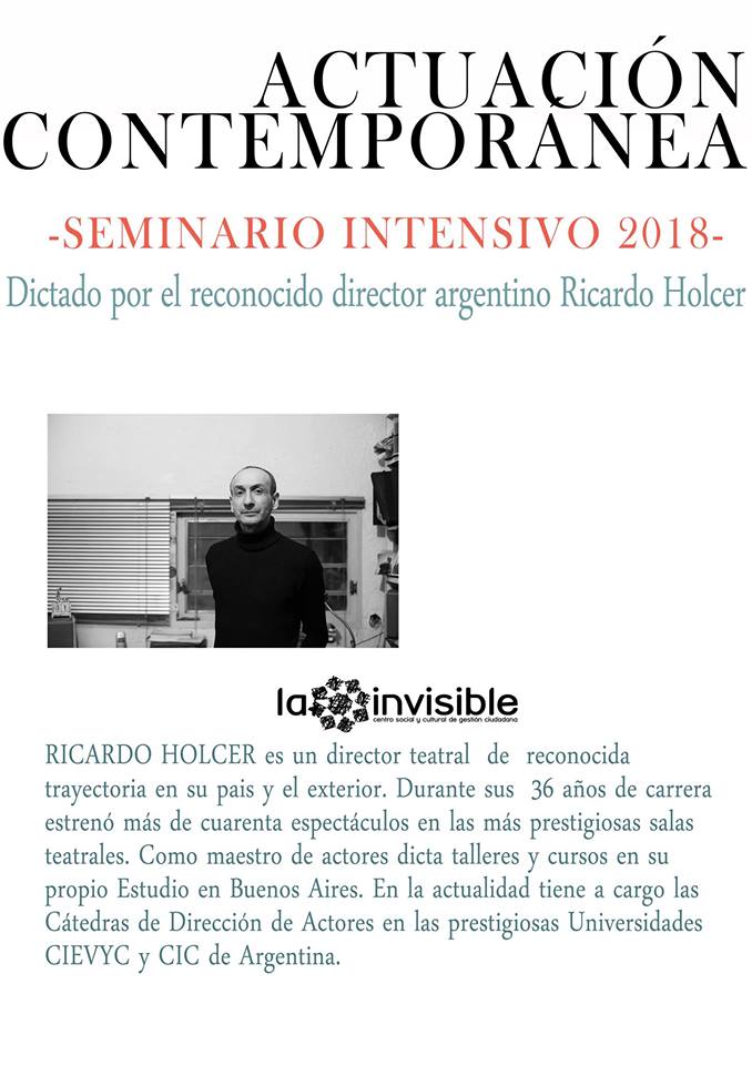 Imparte: Ricardo Holcer. Director teatral. Cátedras de Dirección de Actores en CIEVYC y CIC.