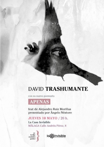 presentación/debateJueves, 10 Mayo, 2018 - 20:00 a 21:30 Presentación del nuevo poemario de David Trashumante, Apenas, con la participación de Alejandro Ruiz Morillas. Presenta Ángelo Néstore.