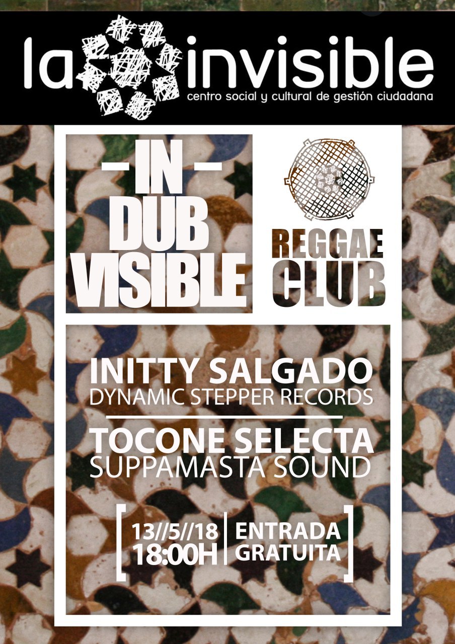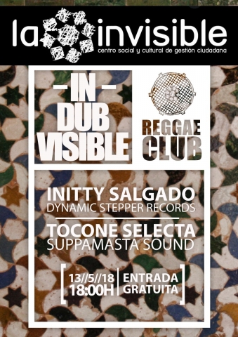 muestra musicalDomingo, 13 Mayo, 2018 - 18:00 a 21:00 Reggae Club -In-DUBvisible con Initty Salgado (Dynamic Stepper Records) y Tocone Selecta (Suppamasta Sound).