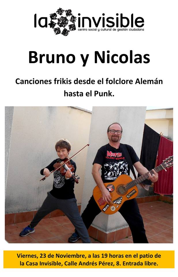 muestra musicalViernes, 23 Noviembre, 2018 - 19:00 a 20:30 Muestra musical para todos los públicos a cargo de BRuno y Nicolas, "canciones frikis desde el flclore alemán hasta el punk".