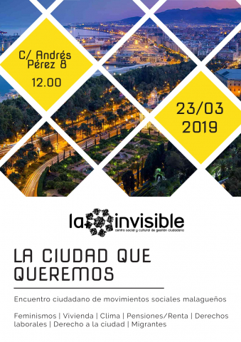 Desde La Casa Invisible os queremos invitar a un encuentro que estamos preparando para el próximo día 23 de marzo, titulado: "La ciudad que queremos. Una apuesta para intervenir en los conflictos, crear organización ciudadana y vertebrar alianzas"