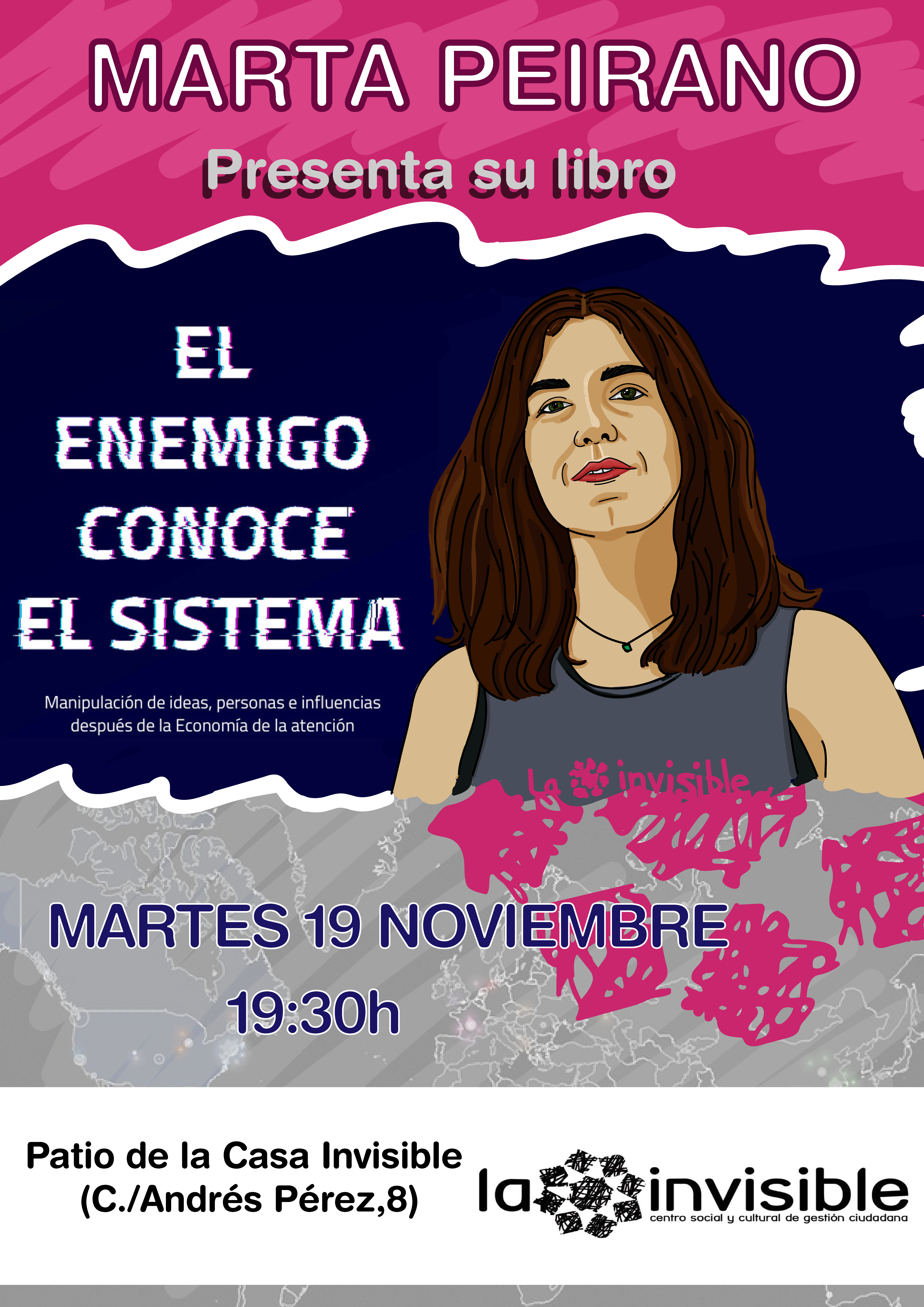 Nunca es tarde si la dicha es buena, reza el dicho, y en la Casa Invisible ya íbamos tarde (pues por ella no ha sido) en invitar a la escritora, periodista y experta en cifrado, seguridad y vigilancia Marta Peirano.