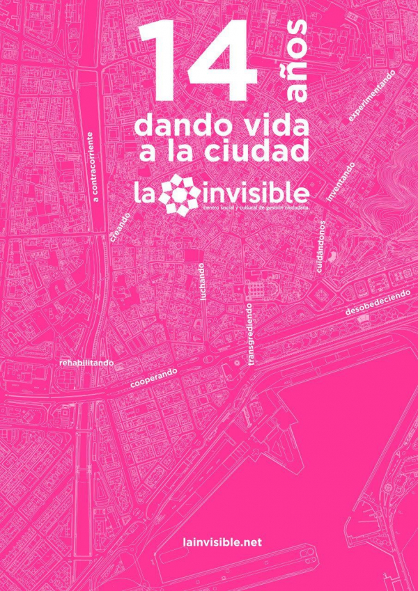 Este mes de marzo La Invisible cumple 14 añazos. 14 añazos dando vida a la ciudad. En un entorno cada vez más hostil para las vecinas, La Casa Invisible es un soplo de aire fresco, un pulmón necesario para la vida que se cuida y resiste a las lógicas de la ciudad neoliberal.